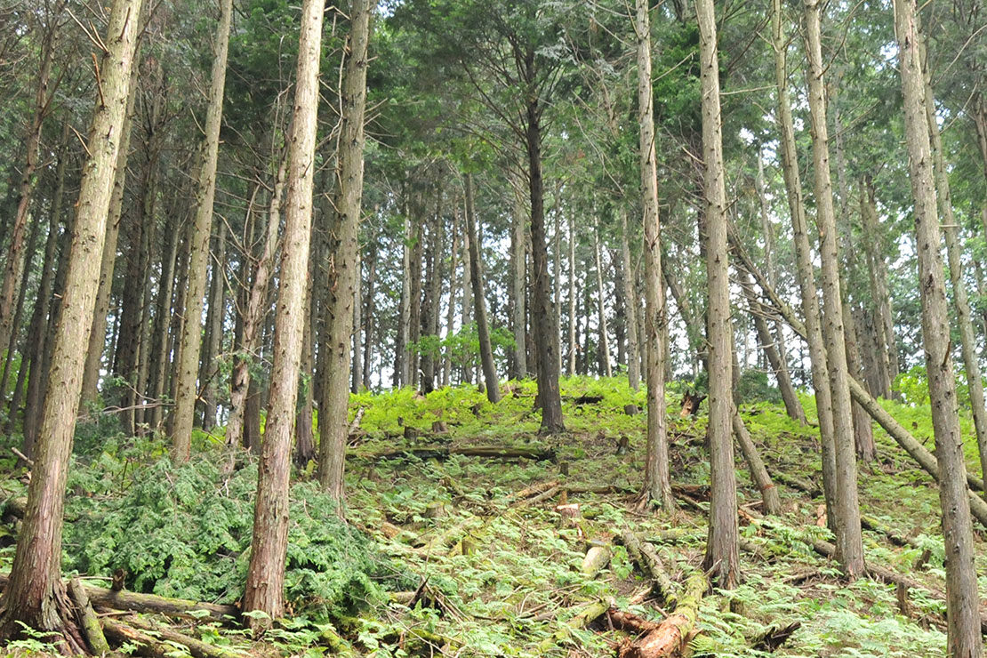 木々の間隔を広げて、光をより多く取り入れるための間伐なので、