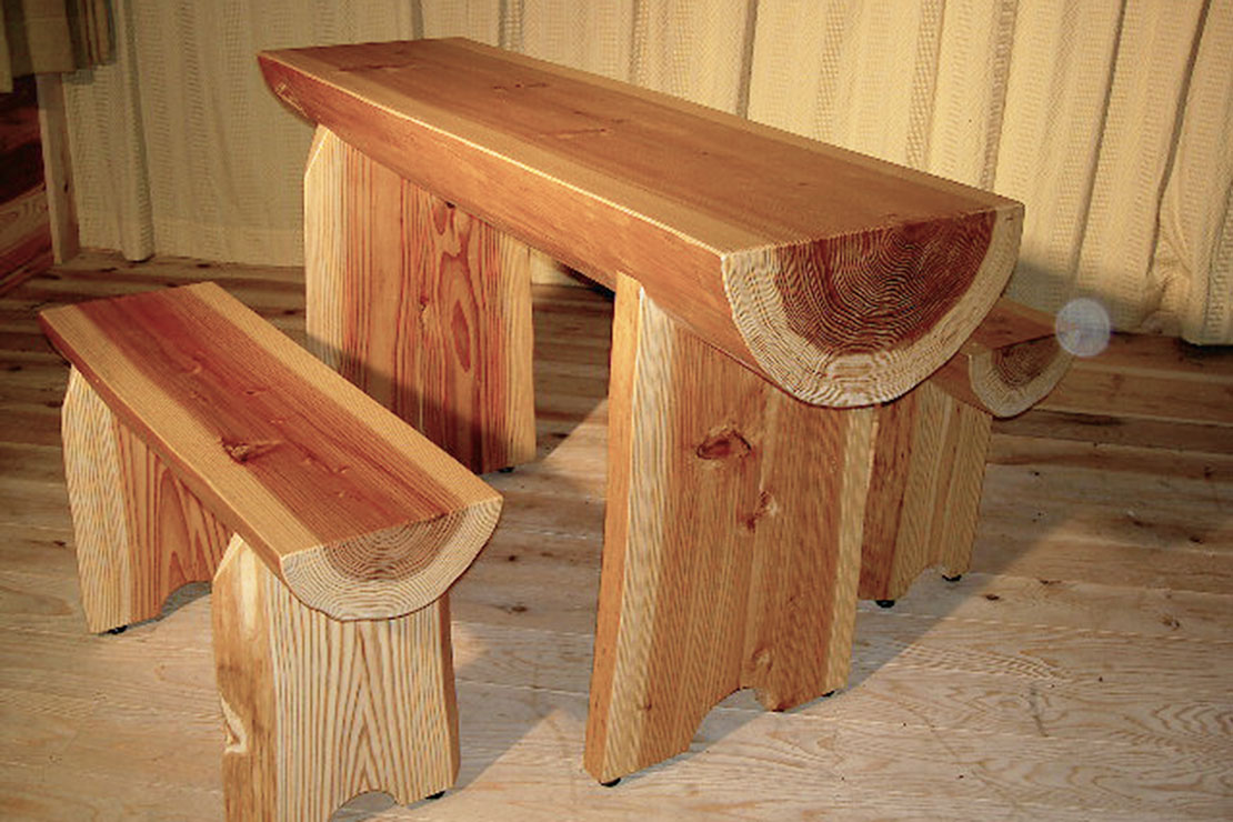 私たちの手で山から木を切り出し、私たちが無垢材の木製家具を作っています。