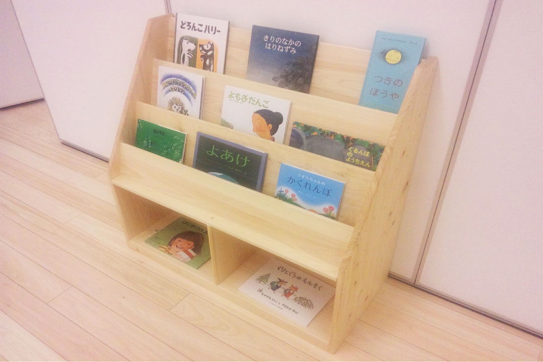 絵本を立てかけて表紙が見えるタイプです。目線を低くすることで、小さな子どもでも手が届き、自分で絵本を選びやすいのが特徴です。シンプルなデザインで、絵本に目が留まりやすくなっています。積極的に本を読む子どもが増えることでしょう。